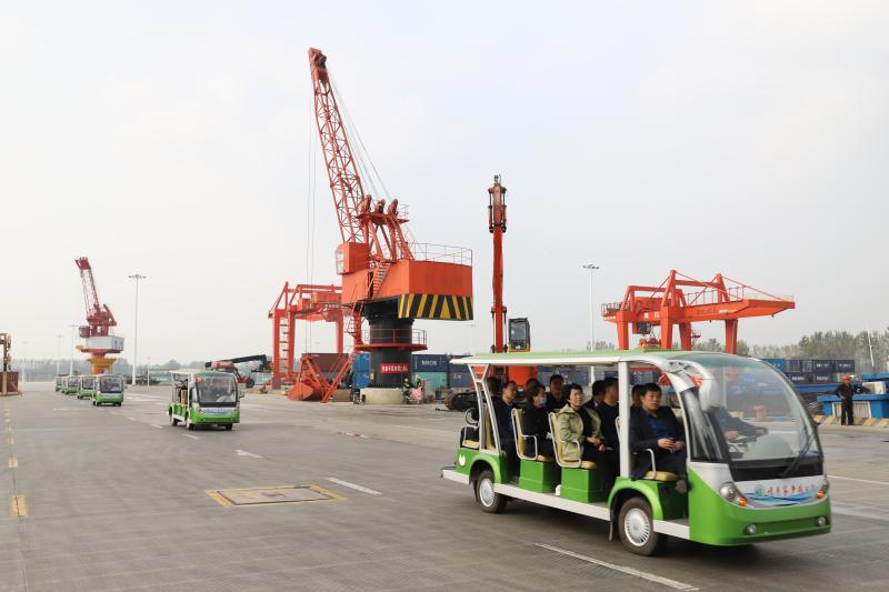 在中心港碼頭,工作人員向來賓詳細介紹了周口的航運總體情況,以及在周口大力發展臨港經濟的大背景下,周口港區臨港產業規劃布局和發展現狀。隨后,來賓乘坐觀光車,到港池前沿近距離了解碼頭運營情況,親身感受碼頭繁忙的作業現場同時,來賓們向工作人員了解碼頭貨源、運量、運輸費用等問題,工作人員詳細解答。大家紛紛贊嘆:“想不到中原腹地擁有如此優越的水運條件,還建設了規模宏大的內河港口,周口臨港經濟發展氣勢如虹,前景一片光明!”②9