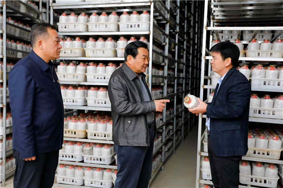 在羅古洞行政村預脫貧戶許廣東家中,王國璽聽取了該戶的幫扶情況匯報,詳細詢問許廣東政策落實情況,對該戶采取的針對性幫扶措給予了肯定。在華瑞農牧食用菌基地,王國璽參觀了該基地產品展示廳、直播間,了解企業生產、擴建情況,夸贊該企業為全縣特色食用菌種植帶好了頭,起到了很好的示范帶動作用,鼓勵該企業要利用好網絡直播平臺,拓寬產品銷路,增加企業效益,帶動更多群眾受益。在君趙食用菌基地,王國璽實地了解該企業菌種制作、生產流程,并對菌包生產、加工過程提出了改進建議。
