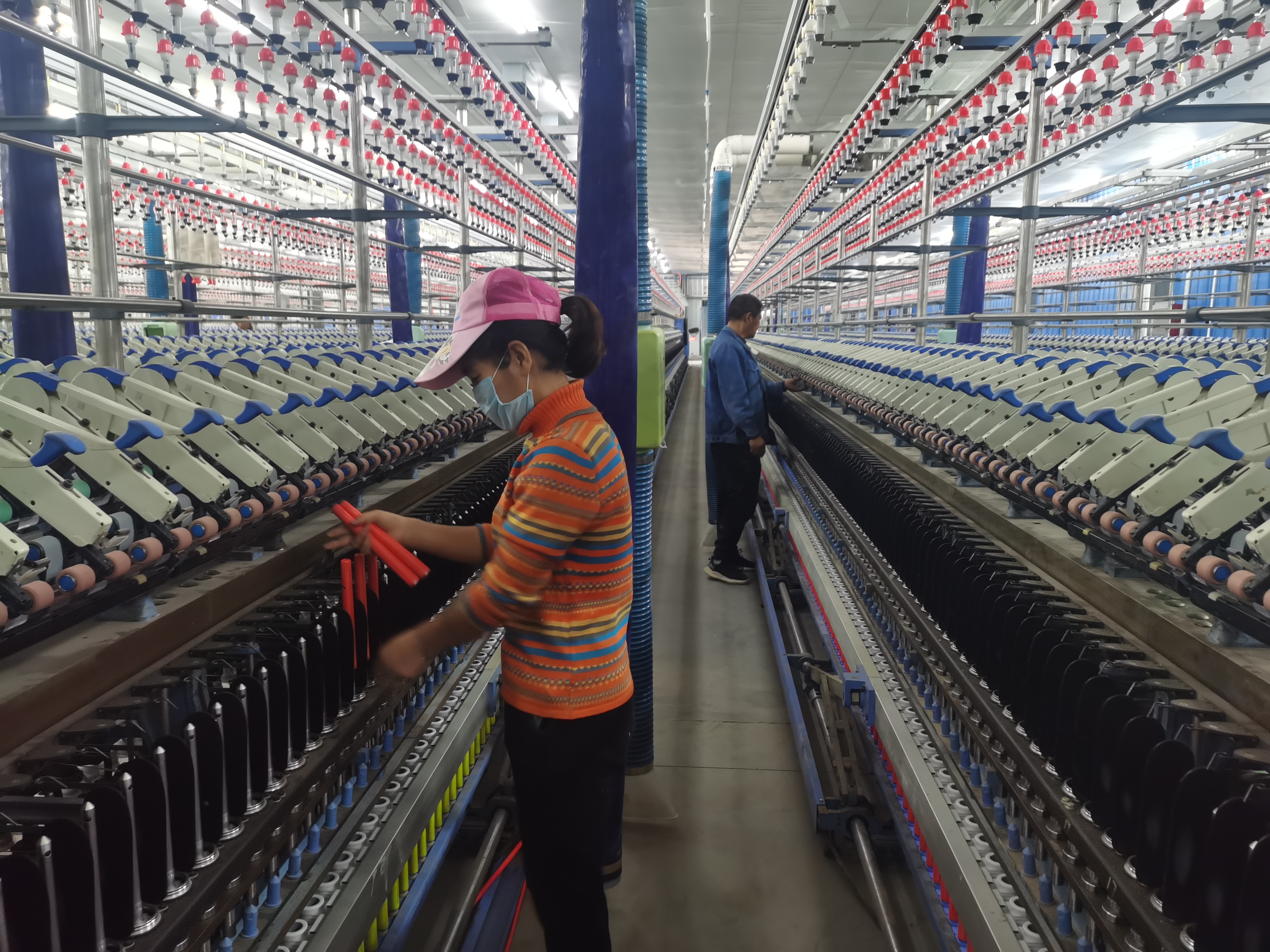 11月9日,扶溝縣博發紡織有限公司一期2萬紗錠生產線進口設備安裝完畢,正在試車。
