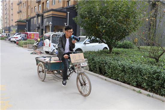 行駛30多分鐘后,劉啟昌來到太康縣城鑫港灣小區,打開喇叭開關,吆喝了起來:“誰家賣書,誰家有多余的書籍賣……”聽到吆喝聲,居民崔海英從家里抱出來一摞書。“全是作文書,學生看了對寫作有好處。”崔海英把書遞給劉啟昌說。