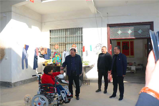 隨后,劉施恩一行前往大許寨鎮張樓村和風喜、葛花李村李清城、葛花李村張治業、君趙村李盼盼等貧困戶家中,每到一處都與貧困群眾親切交流,詢問身體狀況、家庭收入及住房情況。在了解到和風喜孤身一人支撐家庭,拉扯兩個孩子上學,生活十分艱難的情況后,曹長江向其捐贈了5000元現金,鼓勵她要對生活有信心,相信國家的扶貧政策和自然資源局的幫扶工作,早日克服暫時的困難。并向她送去祝福,祝愿她今后的日子越過越好。
