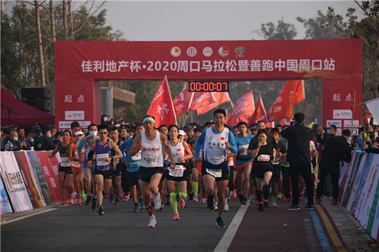 在今日上午8時,佳利地產杯?2020周口馬拉松引黃調蓄鳴槍開跑。