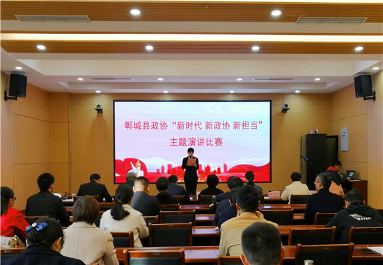 11月19日上午,鄲城縣政協舉行“新時代 新政協 新擔當”主題演講比賽,縣政協主席王偉、副主席李素梅觀看比賽并為獲獎選手頒獎。