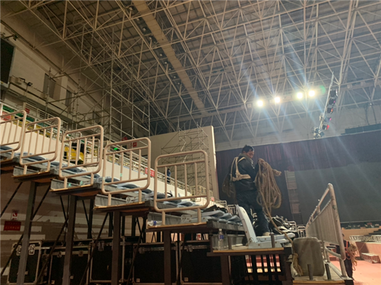 11月24日晚,記者在周口市體育館見到,由馬艷麗領銜回饋家鄉的周商大會國際時裝秀舞臺正在搭建中,據正在施工的工人介紹,他們每天加班加點布置舞臺,預計26日舞臺調試完成,27日開始彩排,28日晚正式開啟時裝秀。