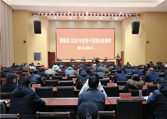 11月25日下午,鄲城縣2020年秋季干部理論進修班舉行結業典禮,縣委副書記、黨校校長王獻超,縣委常委、組織部長蔣磊出席結業典禮。