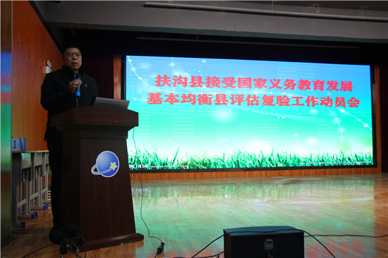 今年是河南省義務教育發展基本均衡縣評估的收官之年,扶溝縣將接受國家的抽查復驗。為進一步做好迎接國家義務教育發展基本均衡縣評估復驗工作,11月25日上午,扶溝縣教體局召開了接受國家義務教育發展基本均衡縣評估復驗工作動員會。教體局全體領導班子、股室負責人、包鄉人員,各鄉鎮(街道)中心校校長、普教專干、初中校長及迎驗學校校長300余人參加會議。