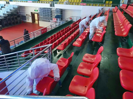 為確保疫情防控工作,保障第一屆周商大會順利進行,11月26日至27日,30余名工作人員對市體育館內(nèi)外、周商產(chǎn)品展示展覽區(qū)進行全面消毒殺菌,包括座椅,走廊,欄桿,門把手等,確保周商大會消殺工作不留死角。 周口日報·周道客戶端見習(xí)記者 喬小納 攝