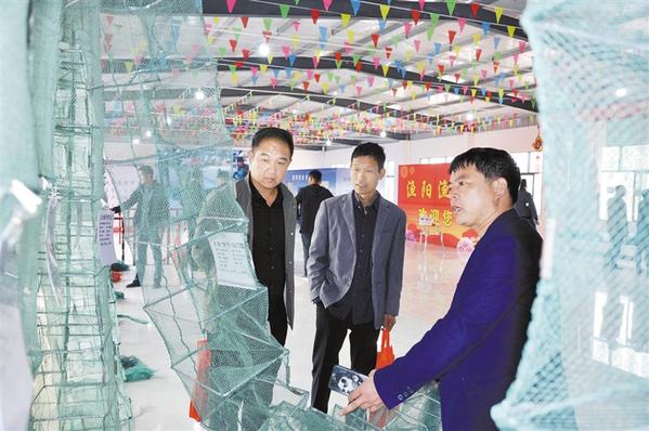 商水縣練集鎮(zhèn)按照“一鎮(zhèn)一主業(yè)”要求,在中楊莊村設(shè)立鎮(zhèn)工業(yè)園區(qū),在各村設(shè)立扶貧車間,大力發(fā)展?jié)O網(wǎng)編織業(yè),全力打造我省最大的漁網(wǎng)小鎮(zhèn)。圖為外地客商在練集鎮(zhèn)漁網(wǎng)展廳選購產(chǎn)品。記者 付永奇 攝