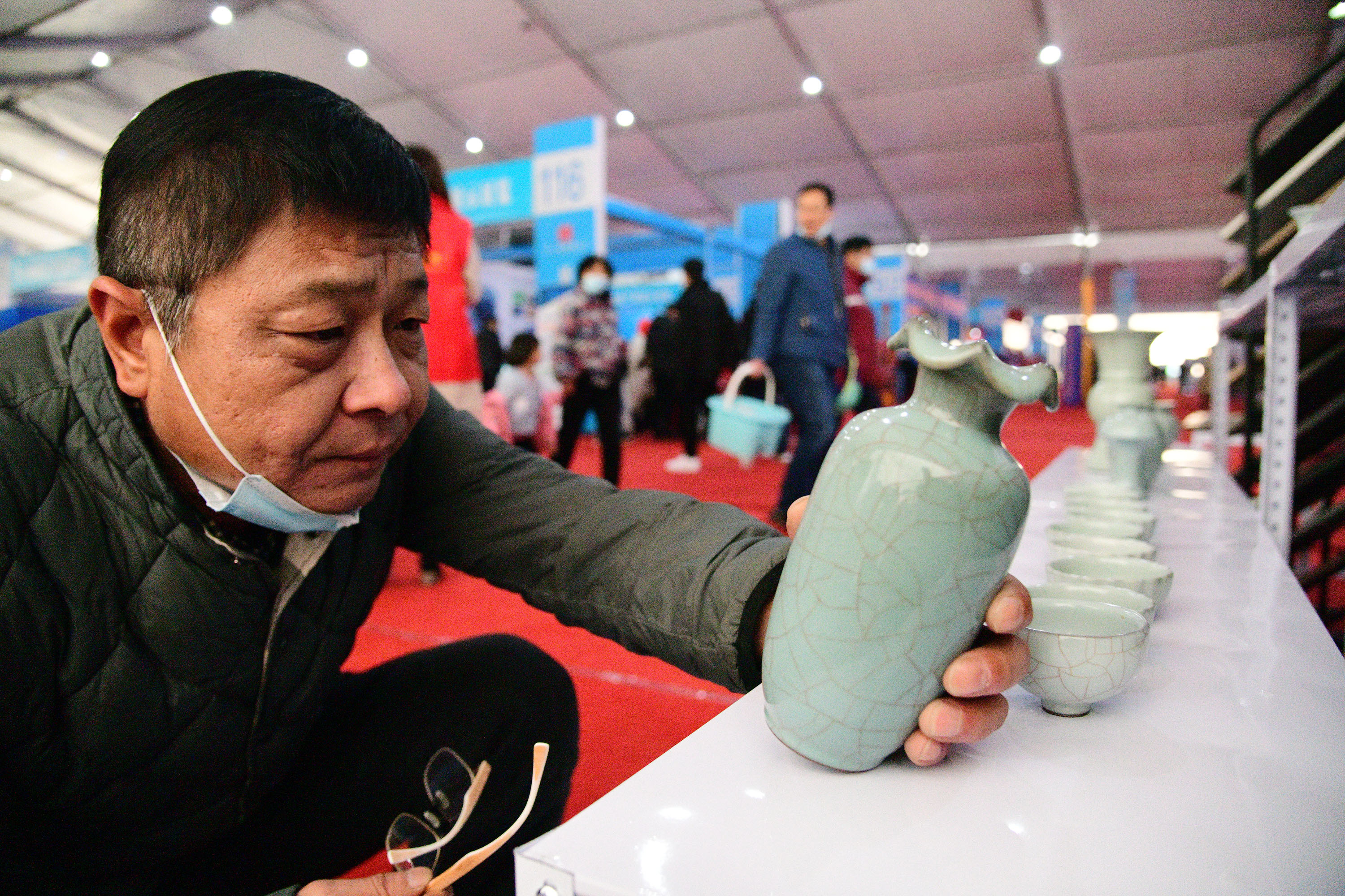 在展會上給顧客講述大宋官瓷品相的董俊,也是很厲害的周口企業家,能夠把開封老字號的官瓷,運營得風生水起,大宋官瓷瓷器和汴繡被譽為七朝古都象征性的物產,還有大宋官茶,含有被譽為茶中黃金的“金花菌”,是“河南老字號”、“非物質文化遺產”,也被選入“首屆開封禮物”。大宋官茶源于宋神宗(公元1068年),它今天的主人是淮陽區新站籍企業家牛華麗,這位淮陽籍漢子從小在開封長大,對大宋官茶獨有情種,現在是大宋官茶掌舵人,是大宋官茶非遺傳承人。而福興齋桶子雞老總馬勇是沈丘人,這是開封的名吃,去開封旅游,吃桶子雞和小籠包,成為游客必須品嘗的美味。馬勇參加周商大會帶回周口的桶子雞深受家鄉人的喜歡,一直熱賣。而“鞋品”鞋的老總侯建峰是鄲城人,他在廣州設有代加工廠,鞋子以河南為主要市場,在開封城由五個專賣店,同時也銷往全國。