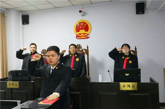 年末歲尾,在各審判庭一線工作忙碌的各辦案團隊,同樣右手舉拳,莊嚴誦讀誓詞。