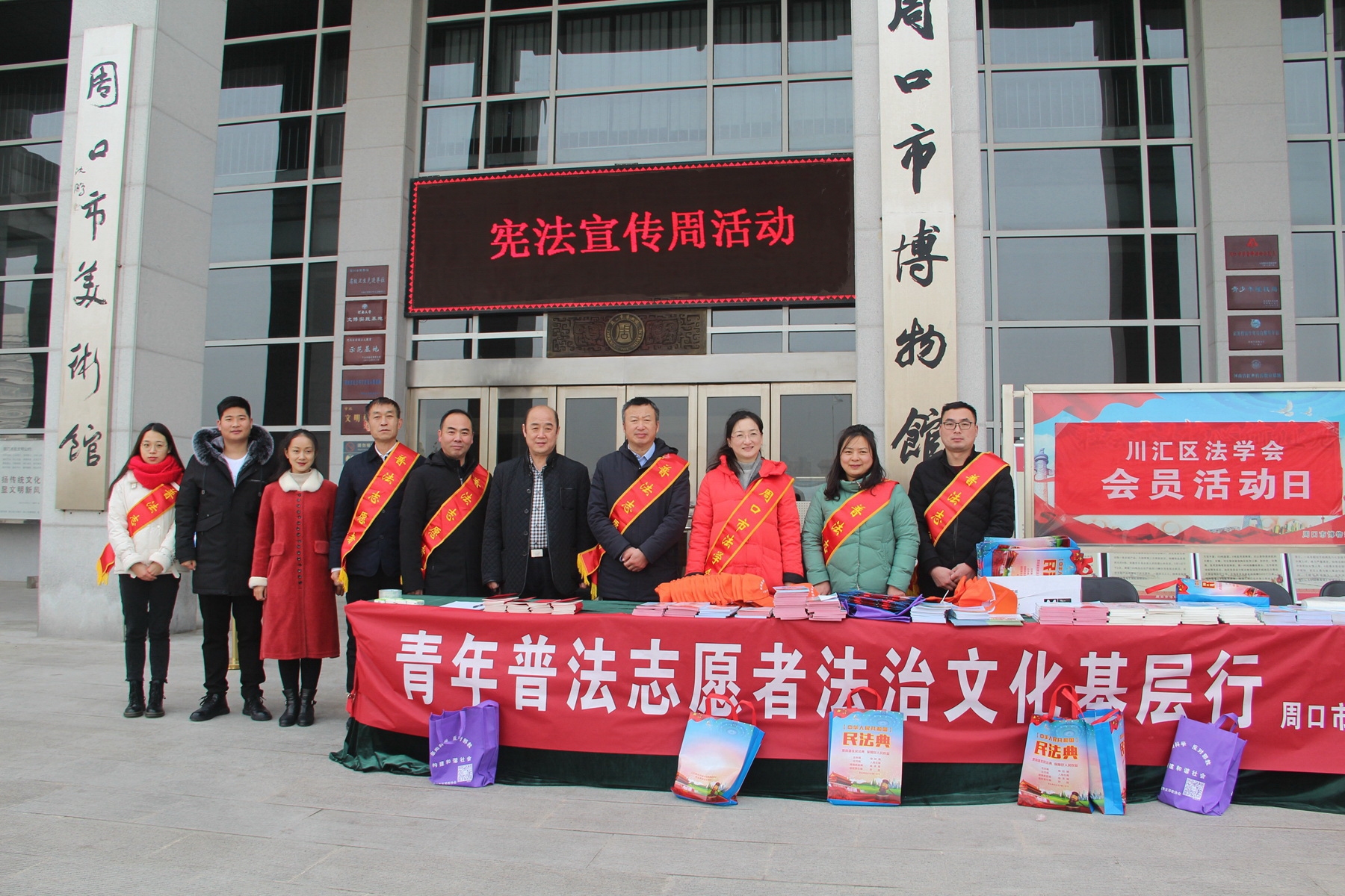 12月3日,在第七個國家憲法日來臨之際,周口市委政法委、周口市法學會、川匯區法學會,聯合團體會員單位市博物館、市文物保護中心開展憲法、國家安全、反邪教宣傳活動,讓遵守憲法和法律在全社會成為習慣、成為自覺。周口市委政法委副書記張曉、二級調研員朱建民參加普法宣傳活動。