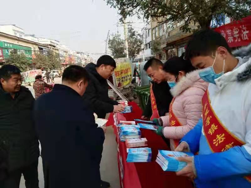 一大早,鎮(zhèn)黨委書記武瀟、副書記劉剛德、人大主席王慶輝、紀(jì)委書記徐如強(qiáng)、武裝部長(zhǎng)王中原等帶領(lǐng)鎮(zhèn)司法所、綜治辦、自然資源所等部門工作人員,在鎮(zhèn)政府門前懸掛宣傳橫幅、設(shè)立咨詢臺(tái)、宣傳展板,認(rèn)真開展普法宣傳活動(dòng)。