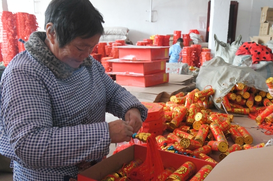 12月14日,商水縣魏集鎮黨橋村扶貧車間內一村民正在加班生產電子鞭炮。春節臨近,環保無污染的電子鞭炮很受市民喜歡,訂單較多,產品供不應求。記者付永奇攝②8