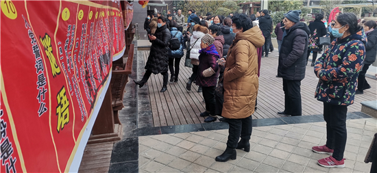 一大早,來自川匯區文聯、區民協的工作人員,將金色東方社區的休閑廣場裝扮得格外喜慶,兩條帶有傳統紋飾圖案的噴繪印著謎語和黨的知識,掛在休閑長廊上,吸引著出來曬太陽或散步的居民。區文聯黨組書記史濤,區文聯黨組成員、副主席游富華,區人和辦事處副書記武陽,市民協副主席羅營東、區民協主席杜超,區民協秘書長任建明等走進社區,參加這場活動?!爸袊伯a黨是什么時候成立的?”“1921年7月23日”“答對了,獎洗衣液一壺!”游富華以問答的形式和居民們互動,向居民們普及黨的知識,居民們紛紛參與,氣氛活躍。