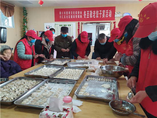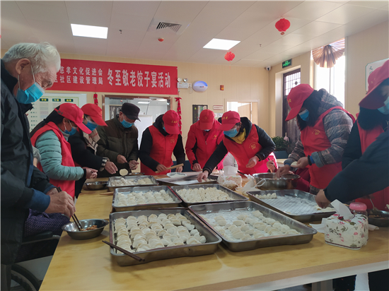 活動現場,志愿者與老人們一起包餃子過冬至。志愿者們的熱情關愛和養老中心服務人員周到細致的服務,讓這些老人度過了一個開心快樂的冬至。馬從仁老人說:“今天這么多人來和我們一起過冬至,真開心,我比平時多吃了不少,很感謝!”