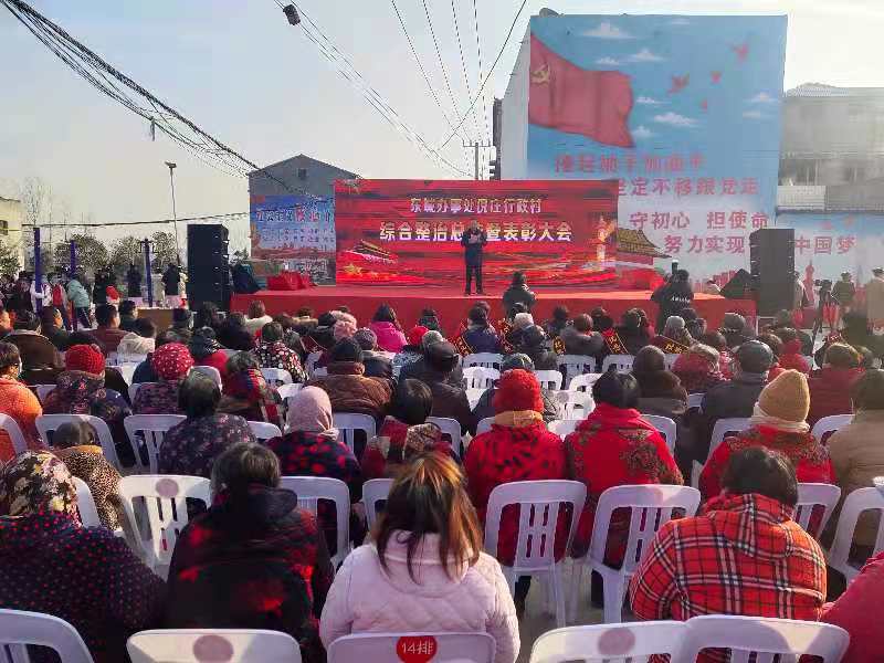 在總結和表彰會上,倪莊村小學學生表演的《謝謝你》,表達了該村群眾對綜合整治工作組的感激之情。戲曲《高唱一曲商水人》展示了商水近年來的積極變化和昂揚向上的進取精神。詩朗誦《留守兒童的心聲》說出了留守娃的心里話。歌伴舞《雙腳踏上幸福路》讓大家對美好生活更加向往。