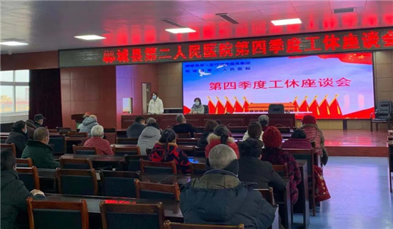 為進一步提高醫療服務水平,構建和諧醫患關系,提高病人滿意度,12月25日下午,鄲城縣第三醫健集團第二人民醫院邀請十多個病區的50多名患者及家屬代表參加第四季度工休座談會。傾聽患者的心聲與需求,共同探討醫院建設與服務,為全院今后的工作提供有力的依據。該院黨總支書記梁麗參加座談會,行風辦主任馬慧主持。