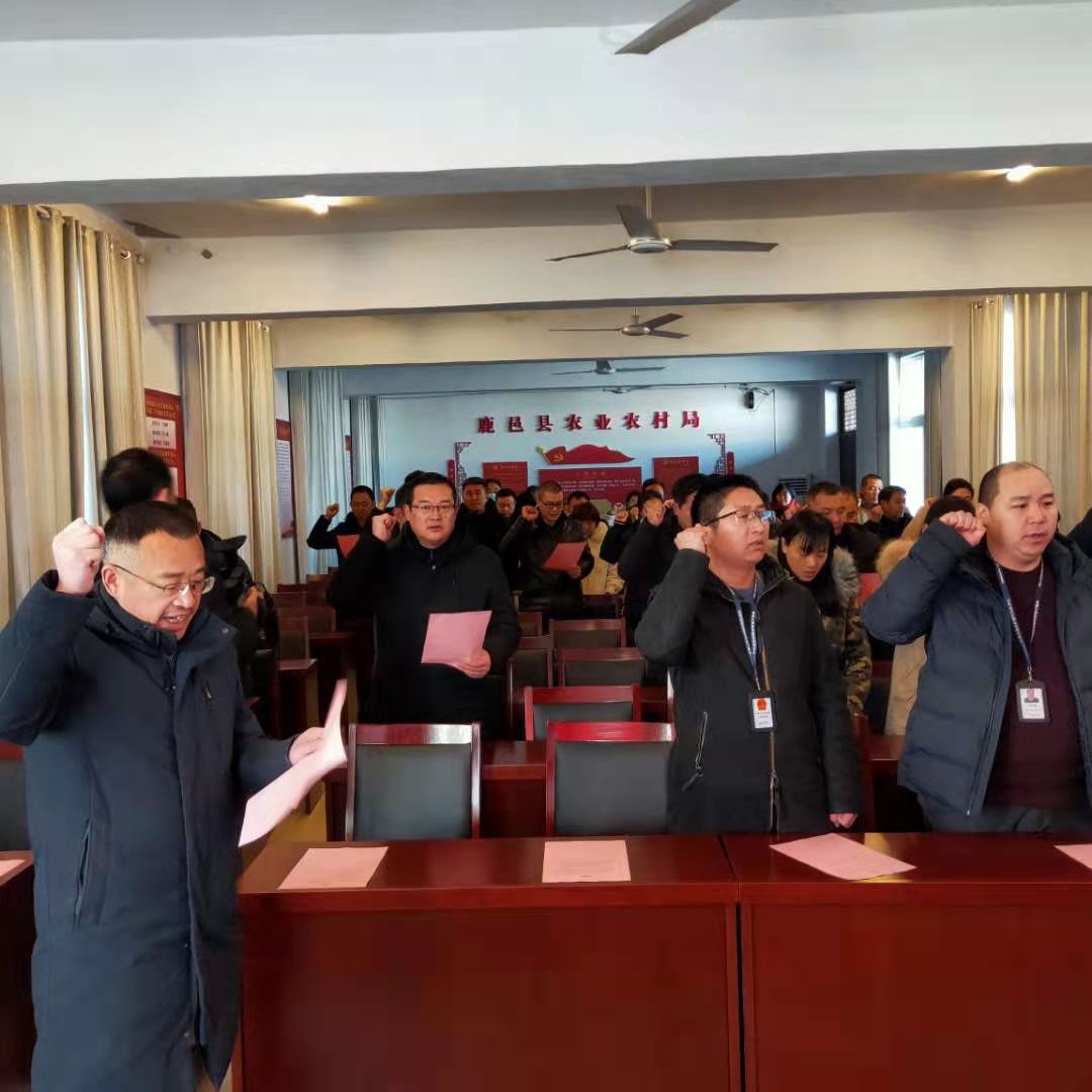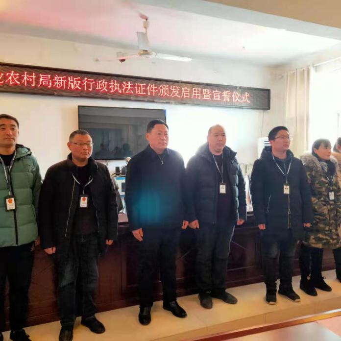“我鄭重向祖國、向人民宣誓:忠于國家,忠于人民,忠于憲法和法律;堅持執法為民,堅持依法行政,維護公平正義;以維護人民群眾利益、維護法律權威為已任,有法必依,違法必究,認真履行法定職責。”12月31日上午9時,鹿邑縣農業農村局在三樓會議室召開新版農業綜合行政執法證件頒發啟用暨宣誓儀式大會。該局局長陳東振為51名執法人員辦法了新版行政執法證并提出具體要求。副局長丁文杰主持宣誓儀式大會并領誓。
