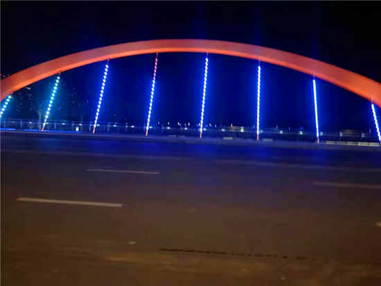 沿流沙河風(fēng)景帶一路東行,沿河步道蜿蜒曲折,微地形高低錯(cuò)落,兩側(cè)栽下香樟、槐樹(shù)、雪松、石楠等不少喬灌木,碧桃、櫻花等彩色樹(shù)種夾雜其間,營(yíng)造河岸飄渺悠揚(yáng)的意境。為抵御寒冬,趕在大范圍降溫前,不少樹(shù)木已經(jīng)提前穿上了抵御寒冬的“保暖衣”。一路走來(lái),休閑廣場(chǎng)、公廁、觀景臺(tái)……原本狹窄的河道成了恬靜的休閑漫步區(qū)。不知不覺(jué)夜幕降臨,廣場(chǎng)上熱鬧起來(lái),盡管天氣嚴(yán)寒,卻絲毫抵擋不住人們出門鍛煉的熱情,橋上的彩色裝飾燈亮起,橋梁橫跨南北猶如飛虹,河流宛若玉帶,舉目遠(yuǎn)眺,燈火輝煌,一派迷人景象。