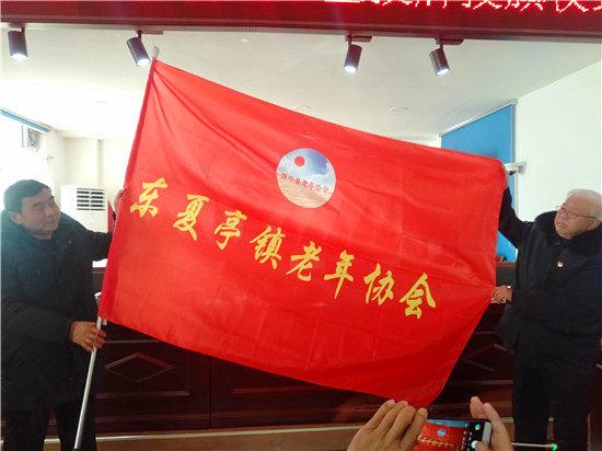 接著,張新芳代表縣老年協會向東夏亭鎮老年協會進行授牌授旗。
