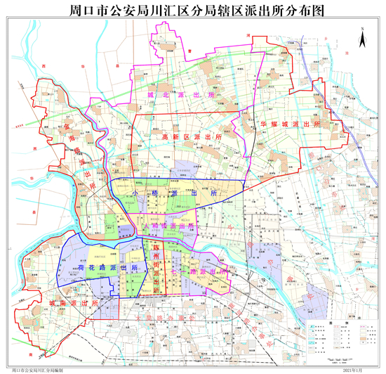 城北派出所轄區:東至周口大道(含周口大道),西至賈魯河,南至太清路(不含太清路),北與西華、淮陽交界。