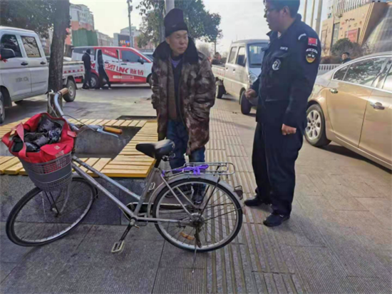 1月9日14點40許,項城巡特警大隊隊員巡邏至市標轉盤附近時,發現快車道上一男子趴在自行車上,由于車流量較多,巡特警大隊隊員張建新、韓曉宇迅速上前查看情況并將其扶到安全區域。