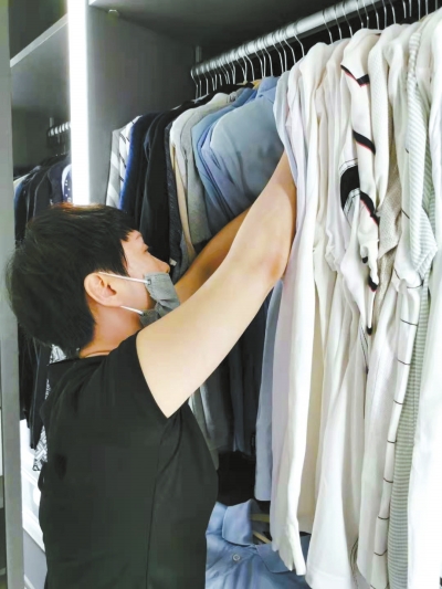比如整理衣柜時,需要把所有的衣服整理歸類,讓客戶決定去留,然后按照顏色、搭配等進行整理,按照客戶的生活習慣放入衣柜,還會教客戶物品歸位的原則和技巧。“全程需要佩戴口罩和手套。”張玲說。