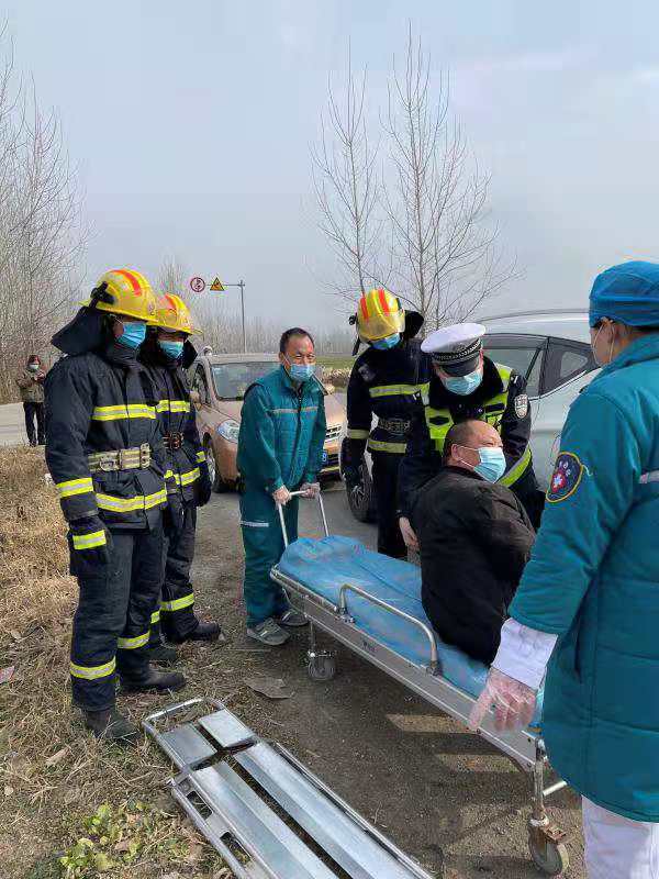 1月27日上午,在國道230線(原省道206線)商水縣與上蔡縣交界的彎道處,舉行了由公安交警、消防救援、衛(wèi)生健康委、醫(yī)院急救中心人員參加的市際縣界模擬道路交通事故應(yīng)急救援“多位一體”演練活動。模擬事故救援演練現(xiàn)場,一輛越野型汽車與一輛小型普通客車相撞,越野車駕駛室嚴(yán)重變形,造成駕駛?cè)耸軅豢ㄔ谲嚴(yán)铮舨患皶r救援很可能出現(xiàn)生命危險。