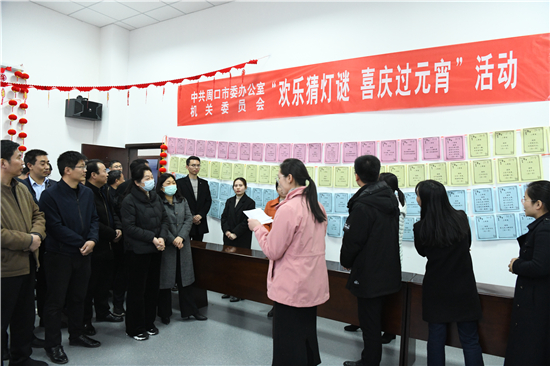 2月25日,為營造良好的節日文化氣氛,豐富黨員干部職工文化生活,引導全體黨員干部職工更好地凝心聚力、干事創業,市委辦公室開展“歡樂猜燈謎 喜慶過元宵節”活動。