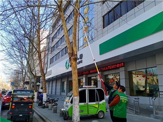 3月4日下午,在中心城區人民路上,園林工人正在對道路邊的綠化樹進行修剪,讓樹木保持良好的形狀和長勢。周口日報·周道客戶端記者 張洪濤 攝