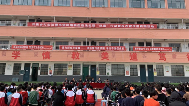 為更好護(hù)航未成年人健康成長,扎實(shí)推進(jìn)政法隊伍教育整頓“我為群眾辦實(shí)事”活動深入開展,切實(shí)發(fā)揮檢察機(jī)關(guān)派設(shè)法治副校長的作用,4月26日下午,周口市淮陽區(qū)人民檢察院聯(lián)合區(qū)公安局、區(qū)司法局走進(jìn)淮陽區(qū)鄭集鄉(xiāng)第二中學(xué),開展以“與法同行,健康成長”為主題的普法教育活動,向該校800余名師生宣講法律知識,交流互動。