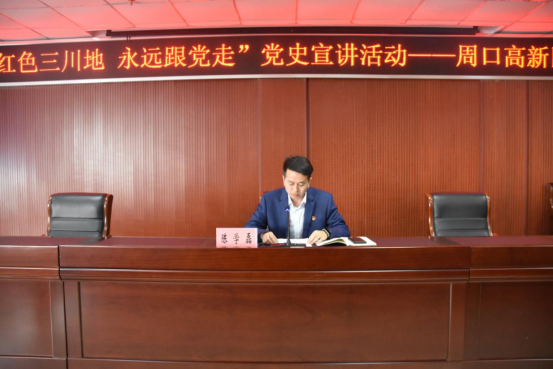 本報訊(記者韓志剛 通訊員 毛星超)為開展好黨史學習教育,激勵全體黨員不忘初心、牢記使命,3月30日下午,周口高新區邀請川匯區委黨校校長劉美蘭,組織開展了以“紅色三川地 永遠跟黨走”為主題的黨史宣講活動。周口高新區管委會全體人員及17個黨支部代表參加。