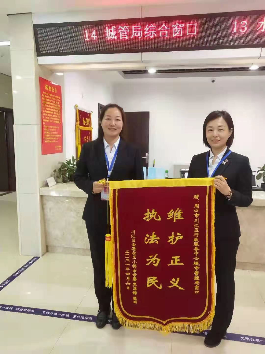 4月6日,周口市行政服務(wù)中心川匯區(qū)城市管理局服務(wù)窗口,張先生激動(dòng)地將一面錦旗交到工作人員手中,感謝川匯區(qū)城市管理局在門頭牌匾審批過(guò)程中給予的熱情幫助和指導(dǎo)。