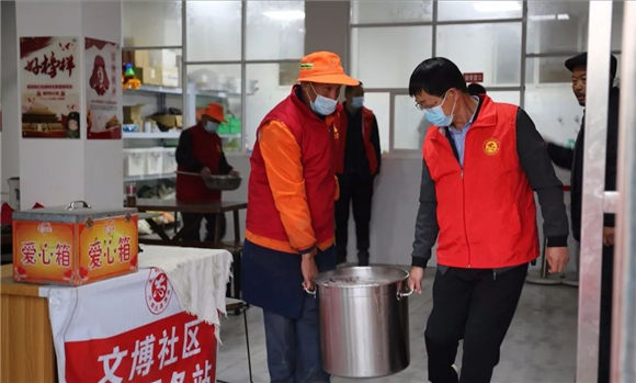 4月9日凌晨,項城市總工會志愿者拉著大米、面粉、食用油,早早來到愛心粥屋。物品卸好后,志愿者開始洗菜、切菜、熬粥,7點左右,飯菜做好,100余名環衛工、孤寡老人等像往常一樣陸續趕來,整整齊齊排隊等候。隨后,志愿者為他們盛粥、端菜、送饃。
