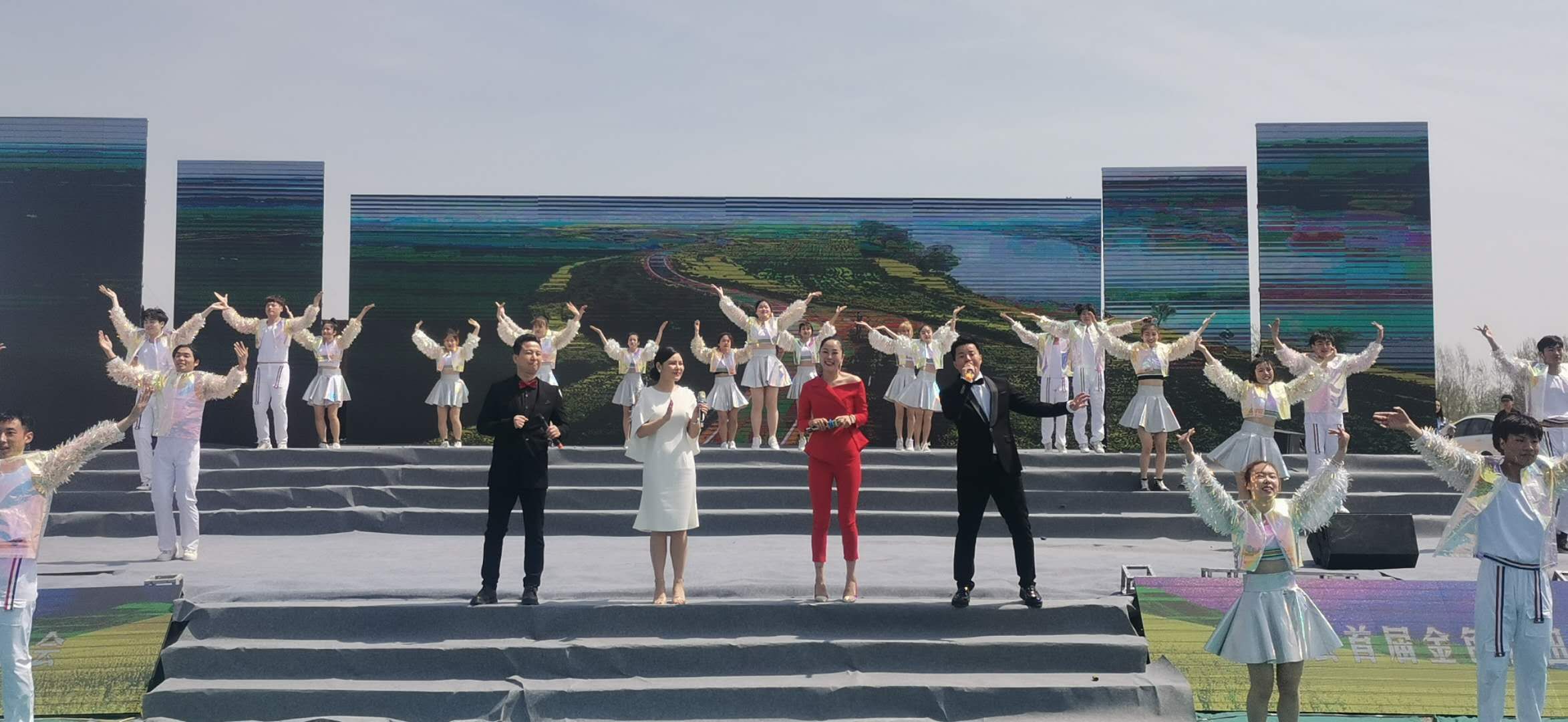 在開幕式上,歡歌熱舞熱情奔放,驚險(xiǎn)雜 技技驚四座,唐俑表演俏皮可愛,一個(gè)個(gè)精彩演出引得游客們掌聲、歡呼聲不斷。一旁的農(nóng)副產(chǎn)品展銷臺(tái)前,鄧城豬蹄、白寺草莓等農(nóng)特產(chǎn)品更是引得游客爭相購買。同時(shí),現(xiàn)場還進(jìn)行了首屆魅力商水多彩沙河金色花田樂游匯首日封發(fā)行儀式,以作開幕紀(jì)念。