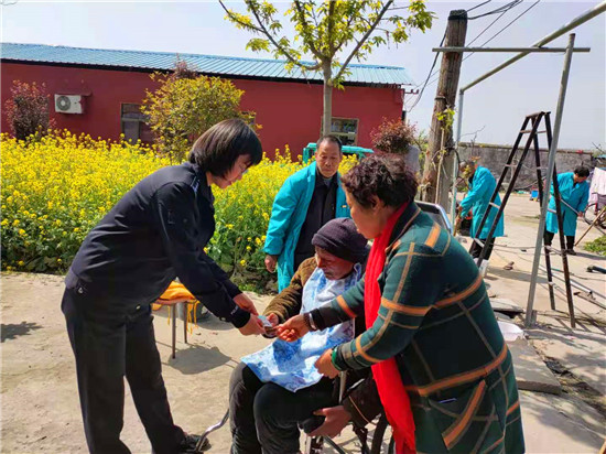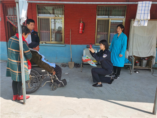 在大王樓敬老院康養的趙中原老人,已經八旬有余,因常年臥床,行動不便一直未能辦理二代居民身份證。三月下旬,其突發疾病,急需辦理醫保手續入院治療。但由于沒有身份證無法辦理相關手續,這可急壞了敬老院負責人和工作人員。按正常程序,需要帶老人去派出所戶籍室采集人像及指紋信息,由于老人年邁又行動不便,他們選擇向沈丘縣公安局西關派出所求助。接到電話后,西關派出所戶籍民警王欠積極與社區民警高坤朋一道前往敬老院。為了采集到合格信息,王欠與敬老院工作人員固定好老人坐姿,自己單膝下跪,為趙中原老人拍照。由于老人年邁且長期臥床,坐姿和面部表情不好調整,王欠反復十余次單膝跪地,才采集到合格的人像信息。