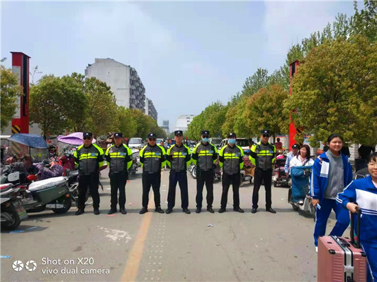 在七八年級到九年級段集中離校的兩天時間內(nèi),縣交警大隊(duì)鐵騎中隊(duì)負(fù)責(zé)人何濤帶領(lǐng)執(zhí)勤民警一直堅(jiān)守在學(xué)校周邊執(zhí)勤崗位,全身心的投入工作,加強(qiáng)交通疏導(dǎo),分流過往車輛,并向?qū)W生和家長宣傳交通安全常識,確保學(xué)生和家長平安回家。他們站在路口和車流中認(rèn)真執(zhí)勤,指揮車輛有序通行,耐心勸導(dǎo)車輛繞道,接受過往司機(jī)咨詢,及時疏導(dǎo)易堵路段,一直堅(jiān)持到全部學(xué)生、家長離校才收隊(duì)撤離,以實(shí)際行動保障了數(shù)千名學(xué)生的平穩(wěn)、安全、有序離校,在學(xué)生家長中間產(chǎn)生了積極的影響,贏得了家長學(xué)生的一致贊賞,以安全護(hù)航保師生平安,切實(shí)實(shí)現(xiàn)了讓家長放心,學(xué)生舒心的良好社會效應(yīng)。②2