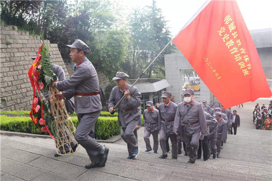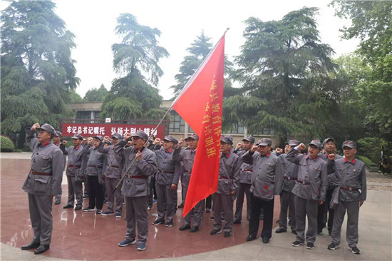 “我志愿加入中國共產黨,擁護黨的綱領,遵守黨的章程……”在革命烈士廣場,全體黨員干部舉起右拳,面向黨旗,重溫入黨誓詞。誓言鏗鏘有力,思想深受洗禮。