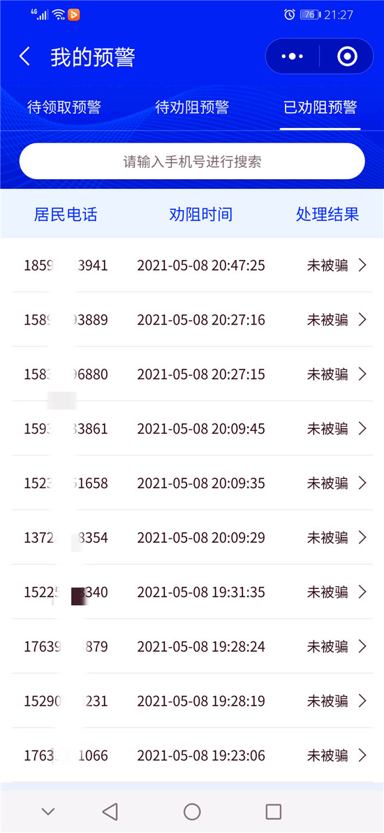 截至目前,洺南街道“金鐘罩”反詐預警系統注冊人數達21929人,受保護居民29547人,成功勸阻155人次免受電信網絡詐騙,取得了良好的社會效果。①9