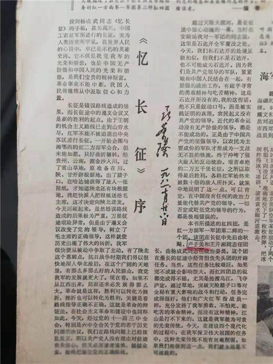 1982年3月16日,《人民日報》《解放軍報》等報發表《憶長征》序言。