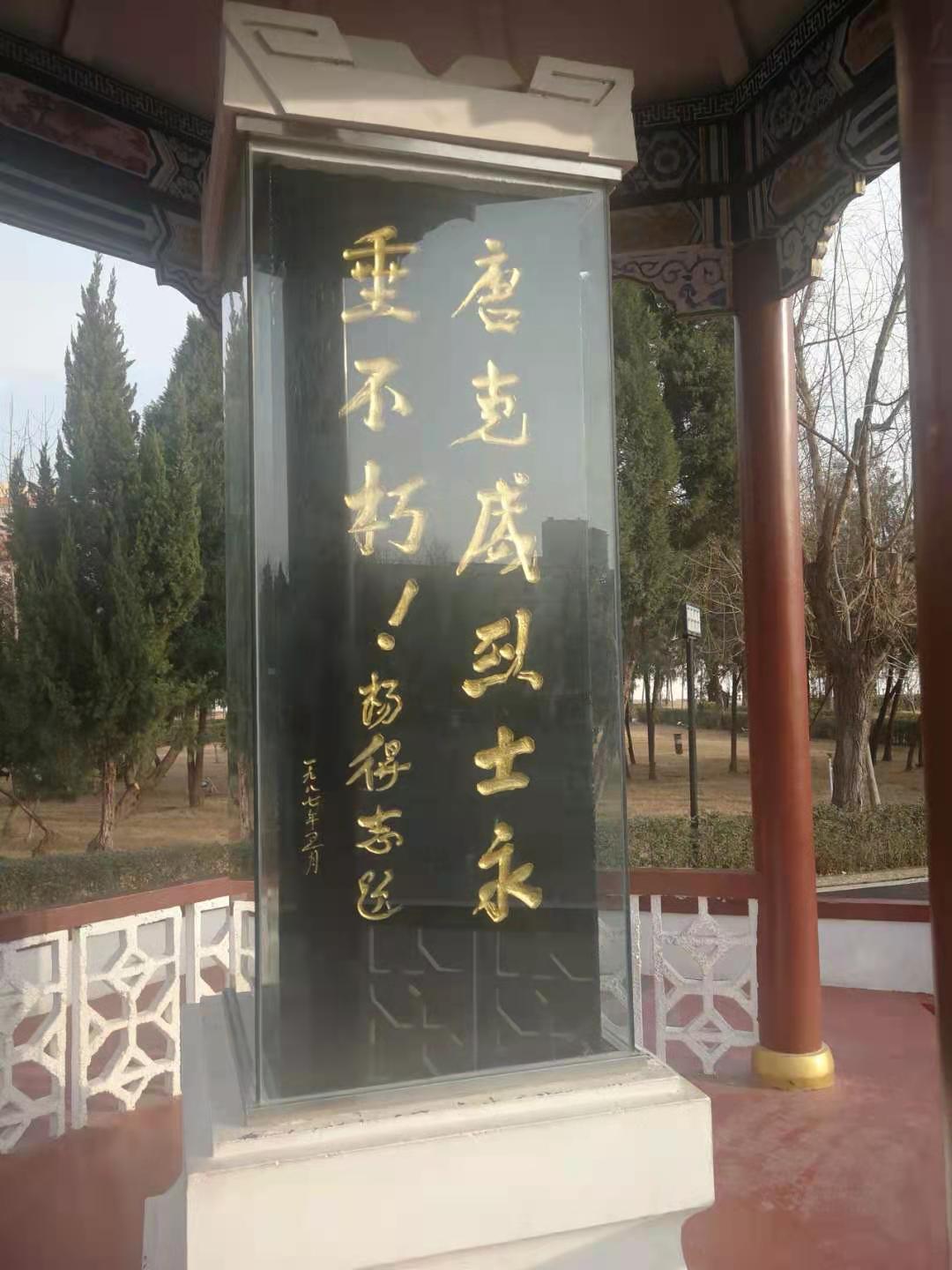 唐克威騎馬越過太康龍曲鐵底河時,不幸墜馬。他一邊還擊敵人,一邊銷毀身邊文件,到剩最后一顆子彈時,毅然飲彈自盡,為國捐軀,年僅30歲。唐克威犧牲后,當地軍民將他葬在鐵底河畔。