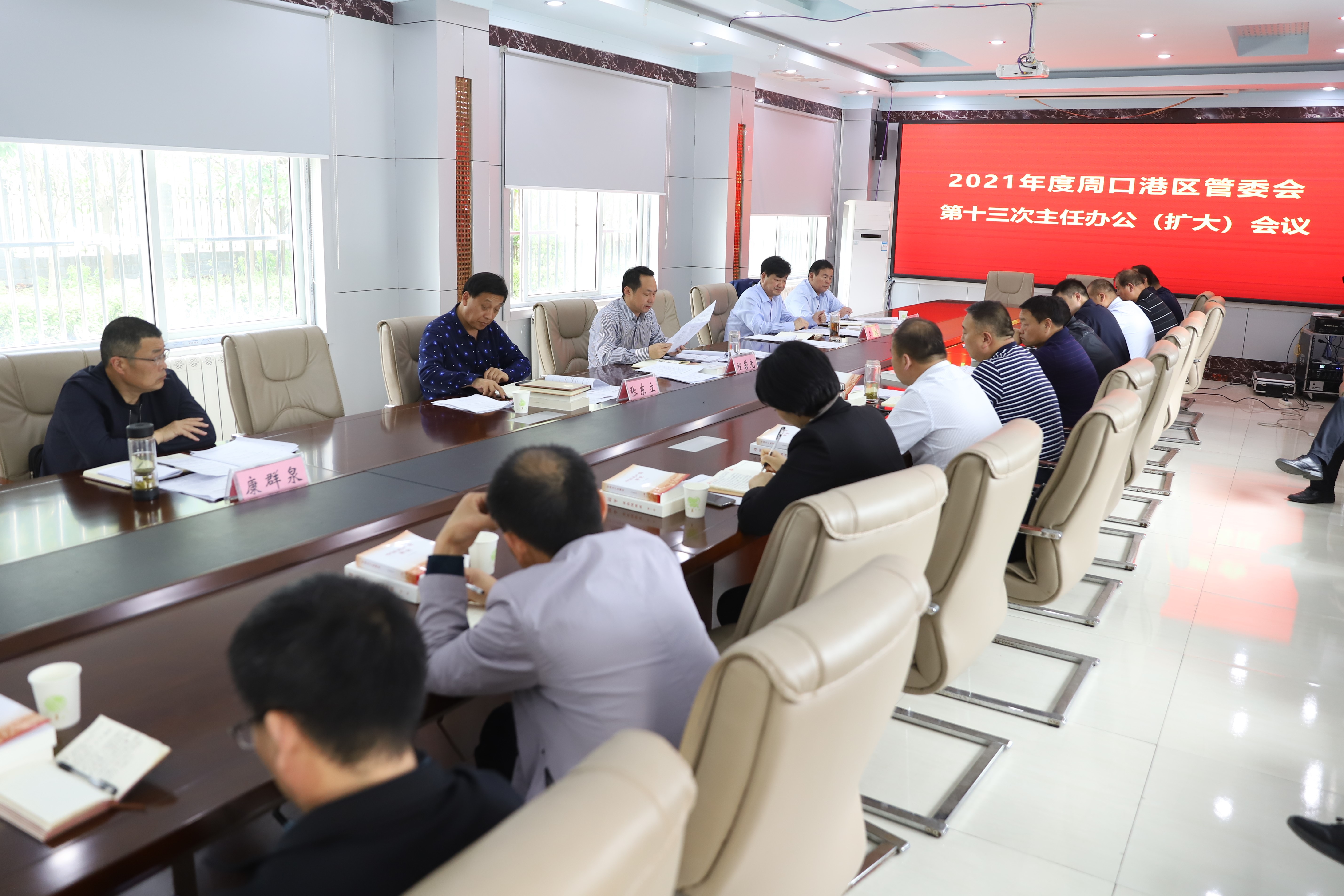 5月19日,周口港區管委會主任程若光主持召開2021年第十三次主任辦公會,集中學習黨史和黨的理論知識,研究部署港區近期重點工作。港區領導張東立、李翔、劉學慶、康群泉出席會議。