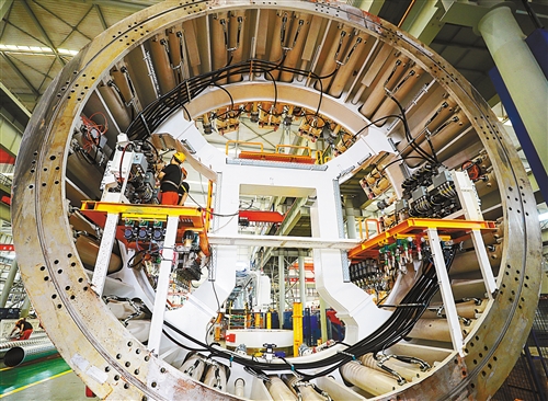 鄭州市經開區中鐵工程裝備集團有限公司生產車間,工人在加緊生產。2009年在鄭州成立的中鐵裝備,目前已是中國最大的隧道掘進機制造服務商。 聶冬晗攝(中經視覺)