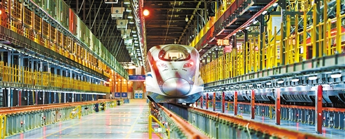 鄭州南動車所對標準組動車進行檢修。近年來,高鐵新線的陸續開通,為鄭州逐步建設成國際性綜合交通樞紐提供了強勁動力。   王 錚攝(中經視覺)