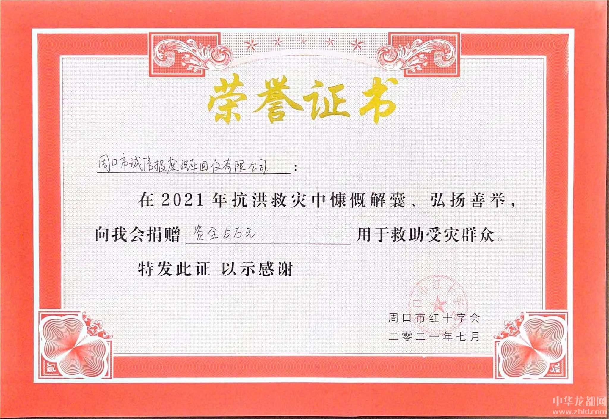 同時,張站國作為周口市誠信報廢汽車有限公司負責人,為切實履行企業(yè)的社會責任,周口市誠信報廢汽車有限公司于2021年7月27日向周口市紅十字會捐贈現(xiàn)金人民幣5萬元,用于防汛救災(zāi)、群眾幫扶、衛(wèi)生防疫和災(zāi)后重建工作。