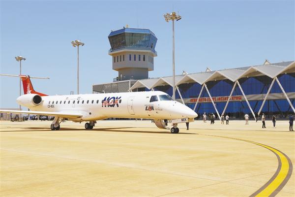 中國援建莫桑比克南部加扎省機場29日正式移交并啟用,莫總統紐西出席啟用儀式并剪彩揭幕。新華社記者 聶祖國 攝