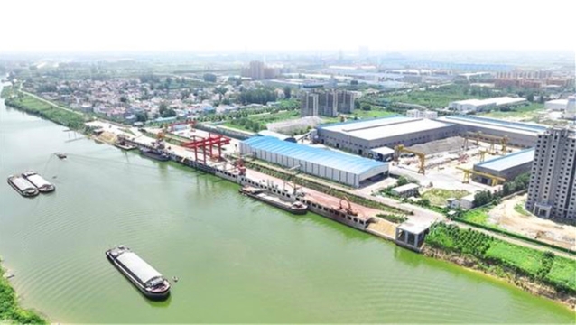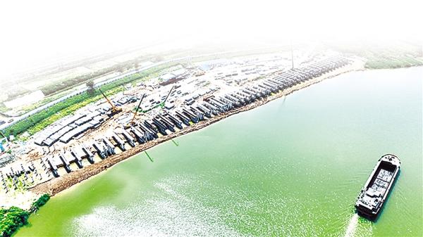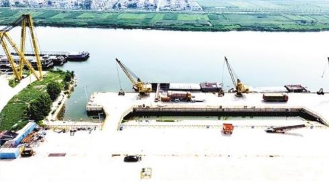 • 鹿邑港區玄武作業區于2021年5月底破土動工,批復岸線118米,建設2個500噸級泊位,設計年通過能力為散貨進出口100萬噸。目前,鹿邑港區玄武作業區主體工程已全部完工,機械作業設備已全部到位。記者在現場看到,工人正在進行后方陸域及服務區建設。