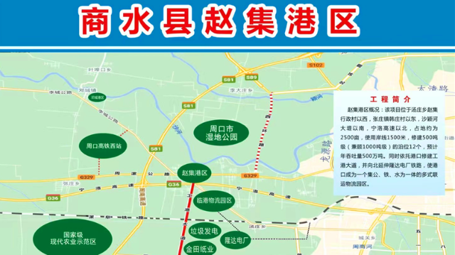 • “鄲城港區項目的實施將有效發揮‘干支聯動’效應,構建鄲城縣水運出海通道,加快周口市內河水運發展,強化我省東向出海水運通道的能力,讓河南內河水運深入腹地。”
