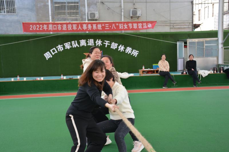 3月7日下午,周口市軍干所邀請市退役軍人事務局全體女職工,組織開展慶祝“三八”國際勞動婦女節聯誼活動并送上慰問品。跳繩、托乒乓球、拔河、羽毛球4項友誼賽讓女同胞們樂在其中。③3記者 彭慧 通訊員 王曉會 攝