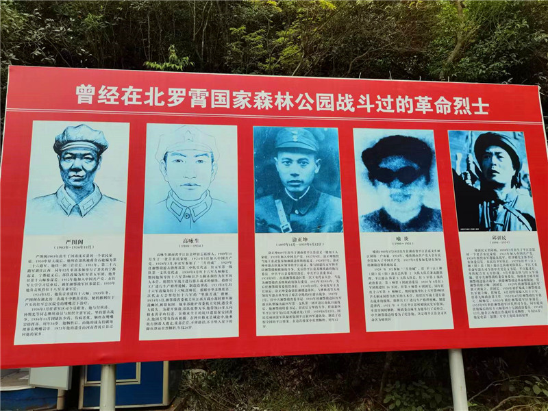 位于羅霄山深處的平江縣“光輝起程”廣場,革命烈士嚴圖閣、高詠生等人的巨幅畫像